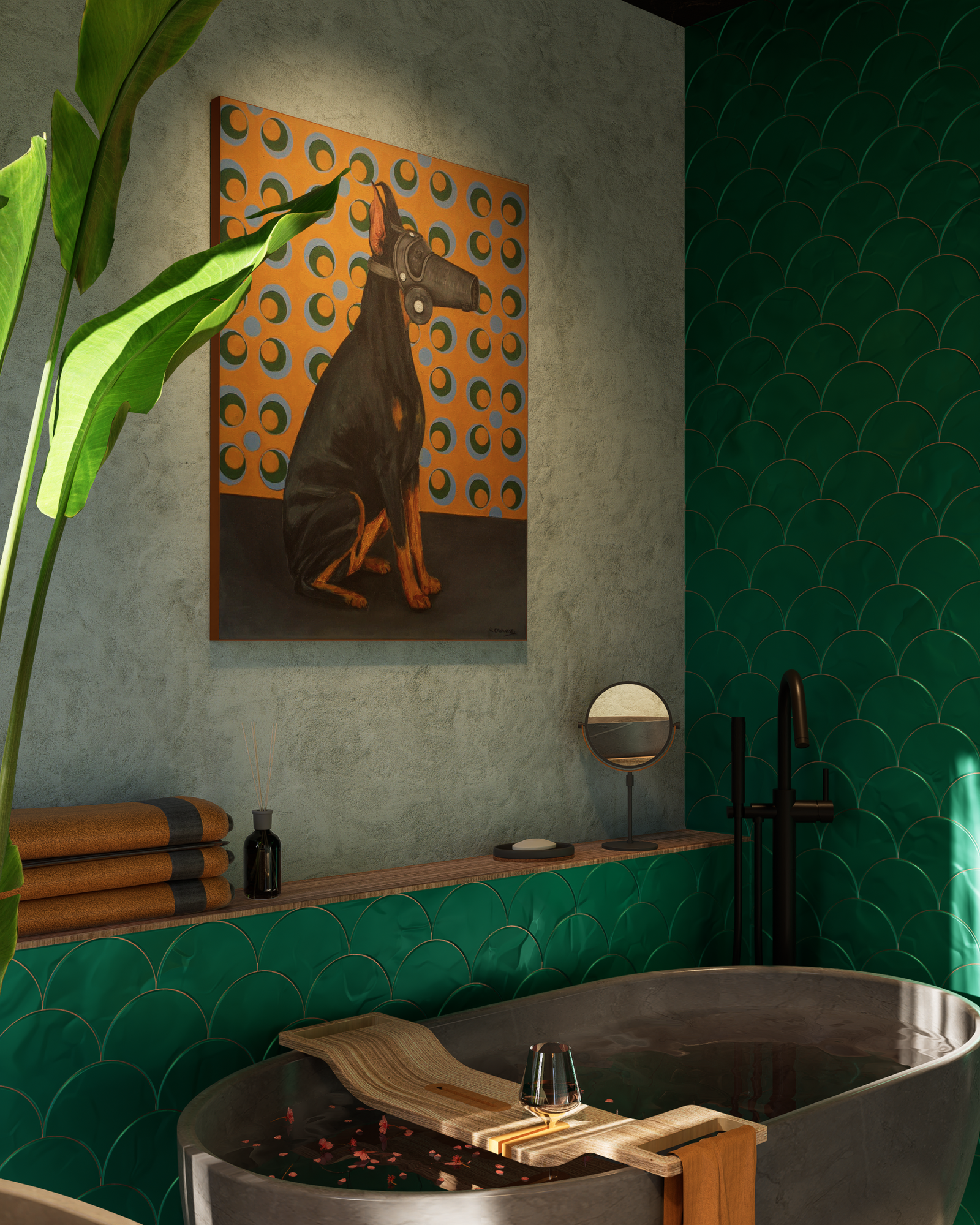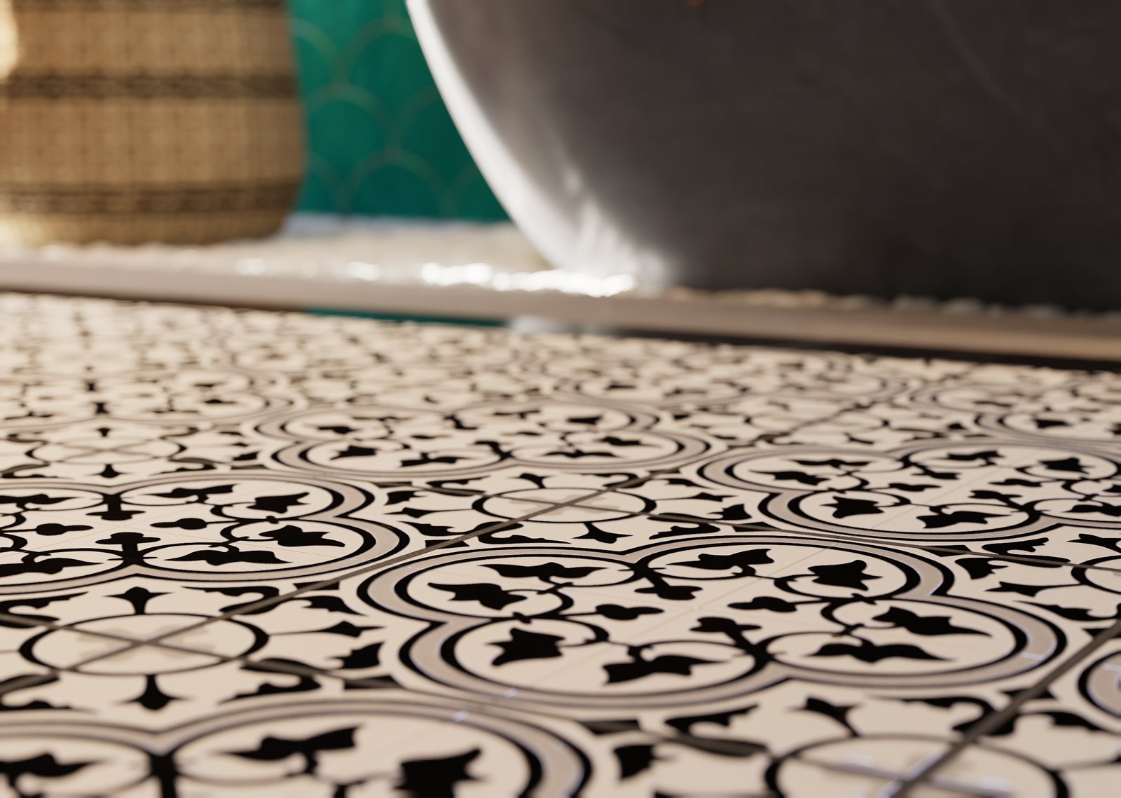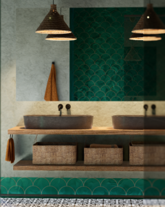 No se trata solo de un área funcional, sino de un refugio sensorial definido por la materialidad. El uso del azulejo de escama artesanal y el suelo hidráulico no solo rinde homenaje a la tradición mediterránea, sino que fragmenta la luz para crear una atmósfera de calma exótica, transformando el ritual cotidiano en una experiencia de desconexión absoluta.
